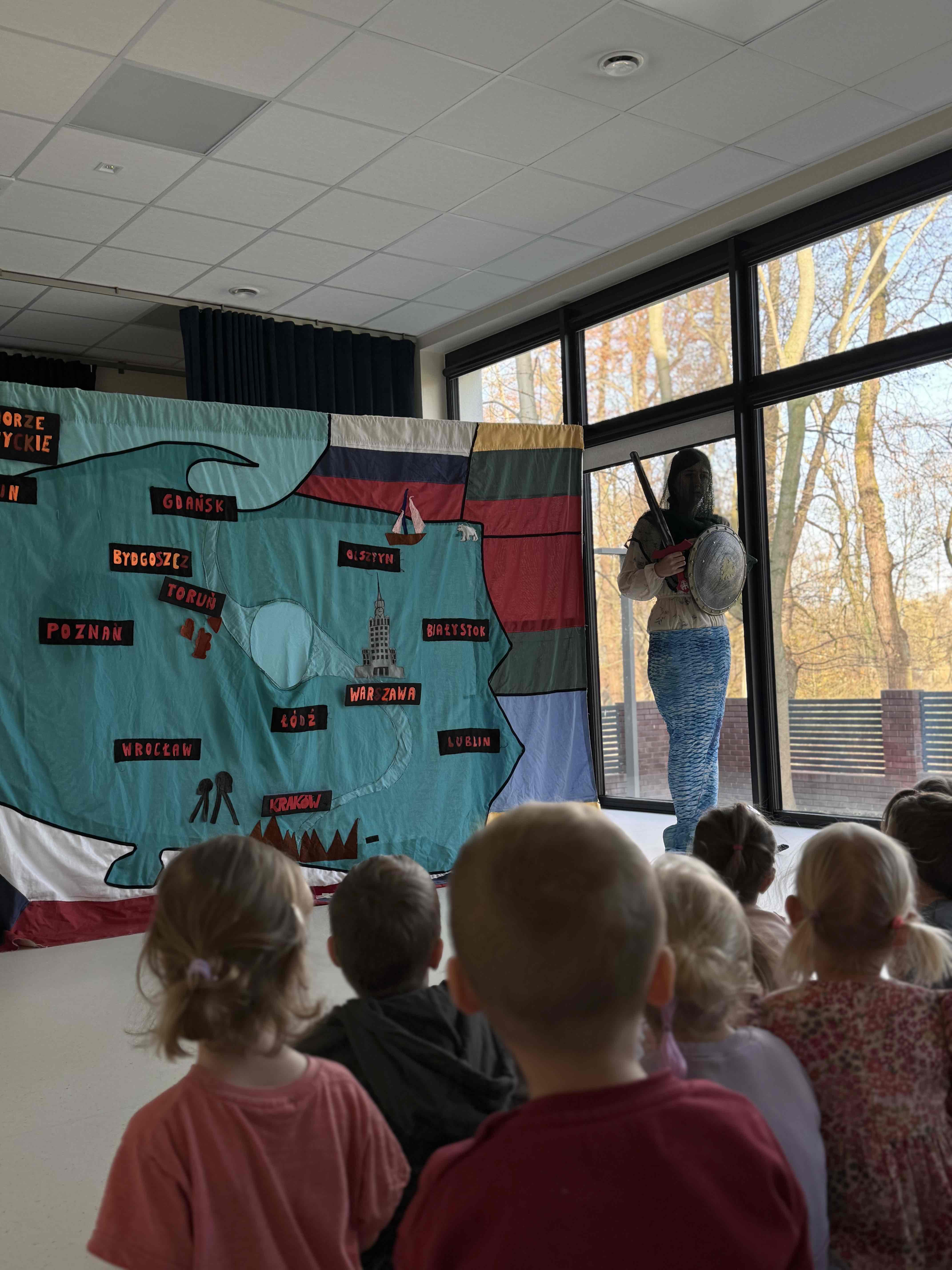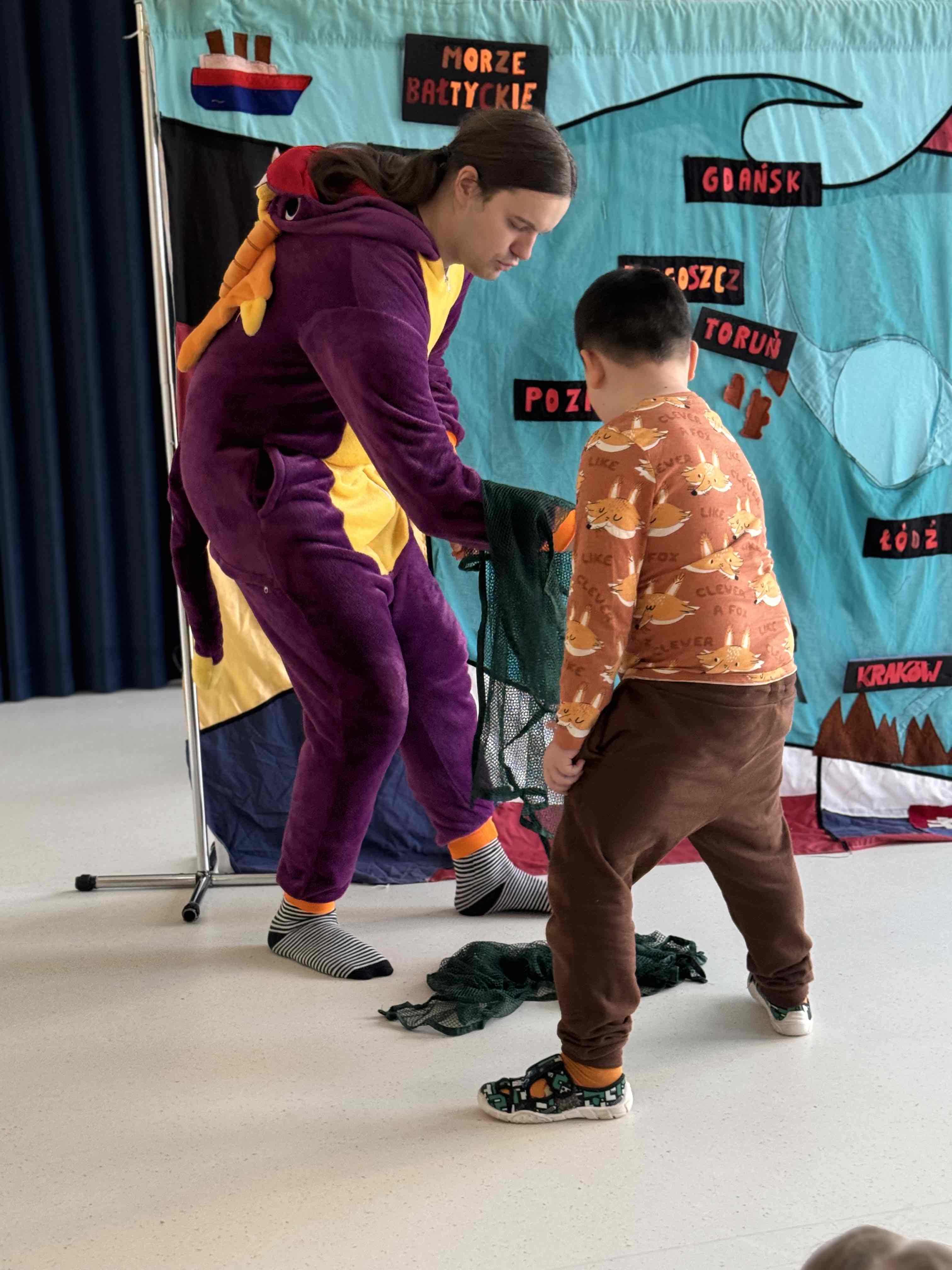 Nasze przedszkolaki miały przyjemność obejrzeć spektakl pt.: "Po Polsce podróże małe i duże". Dzieci wraz z bohaterem - smokiem Bazylim - wybrały się w podóż po Polsce. W trakcie przygody młodzi widzowie poznali symbole miast, takie jak Syrenka Warszawska, poznańskie koziołki i Złota Rybka, ucząc się przy tym polskich tradycji, kultury i ciekawostek o kraju.