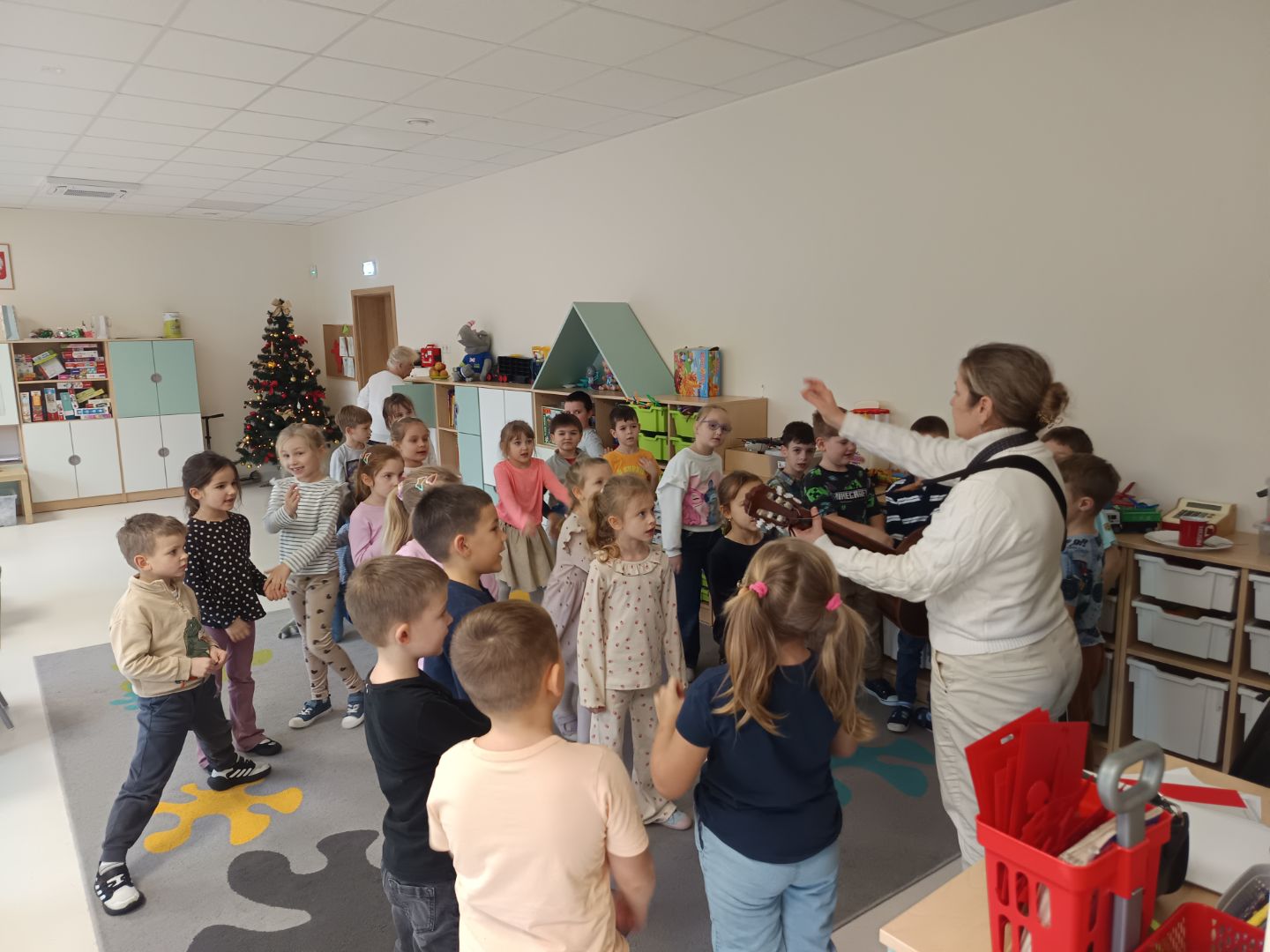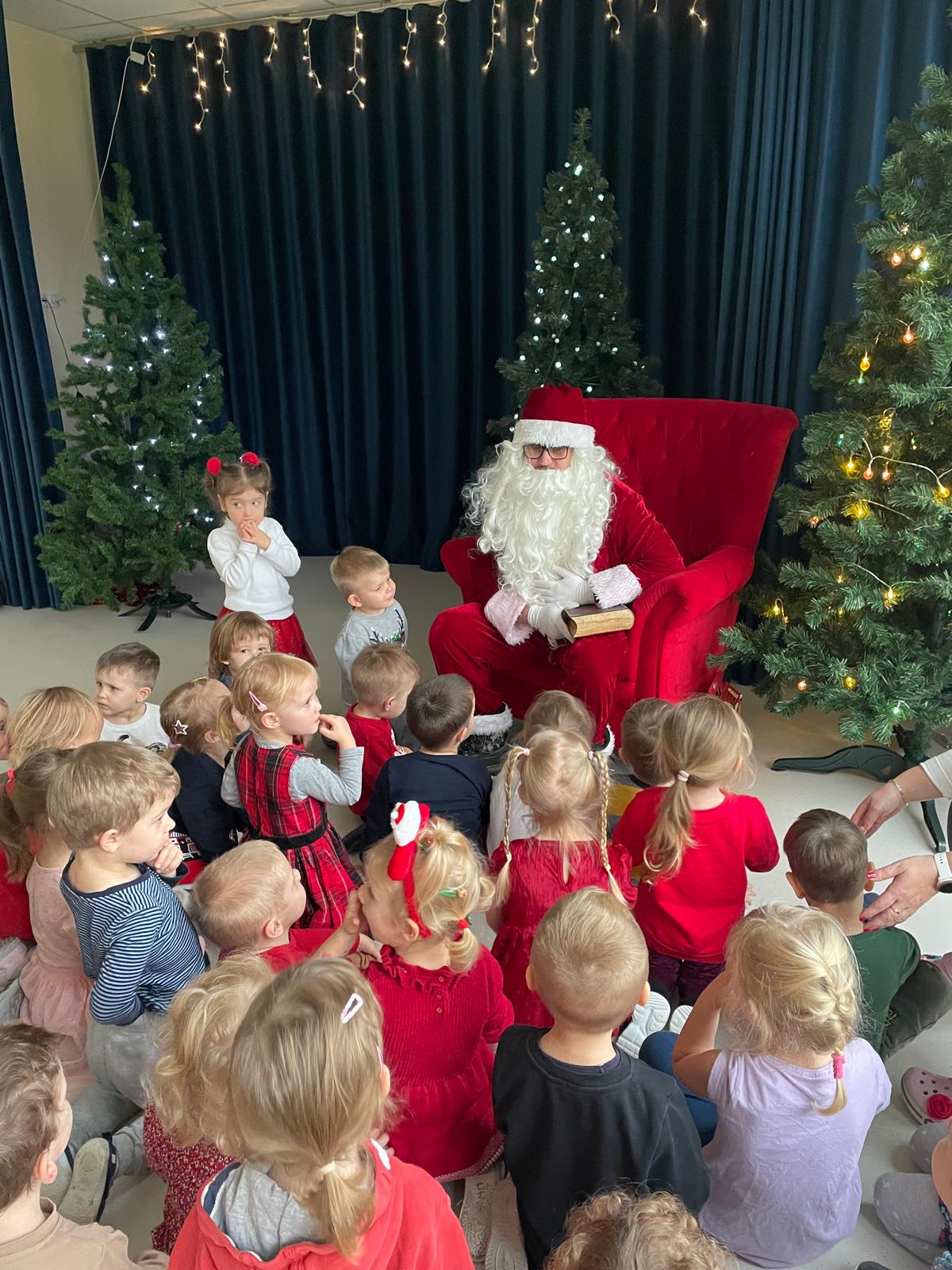 W dniu dzisiejszym odwiedzili nas niezwykli goście. Dzieci z ogromną radością przywitały Mikołaja, opowiadały mu o swoich marzeniach i odbierały drobne upominki. Wspólne zdjęcia i rozmowy sprawiły, że ten wyjątkowy gość stał się jeszcze bliższy przedszkolakom. Dużo radości dostarczyły także wesołe zabawy prowadzone przez Elfa, który zachęcał dzieci do tańca, śpiewu i świątecznych aktywności. Spotkanie stworzyło ciepłą, magiczną atmosferę i na długo pozostanie w pamięci wszystkich uczestników.