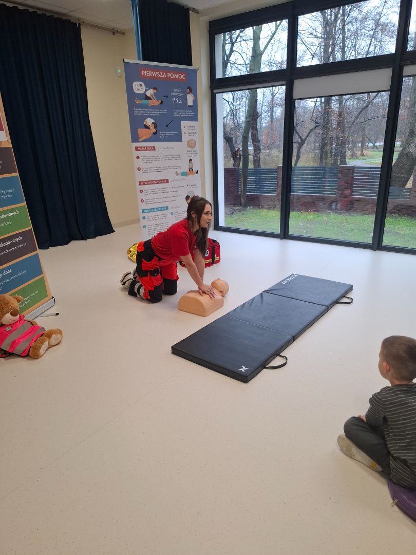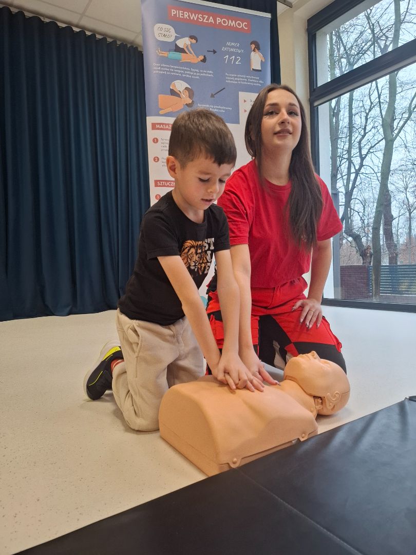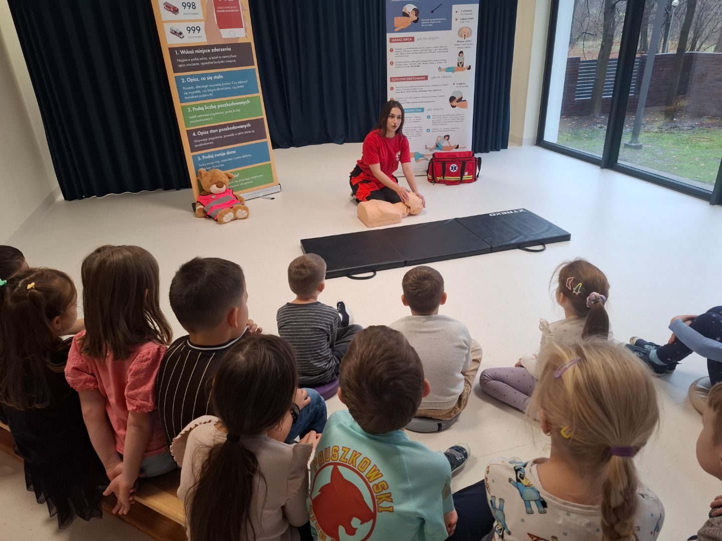 W naszym przedszkolu odbyły się warsztaty z pierwszej pomocy, podczas których dzieci z najstarszych grup w przystępny i bezpieczny sposób poznały podstawowe zasady udzielania pomocy. Przedszkolaki uczyły się, jak wezwać pomoc, jak reagować w sytuacjach zagrożenia oraz jak zadbać o bezpieczeństwo swoje i innych. Z pomocą instruktora dzieci ćwiczyły na fantomach, odgrywały krótkie scenki oraz dowiedziały się, że nawet najmłodsi mogą pomóc – najważniejsze jest, aby zachować spokój i poprosić dorosłych o wsparcie.