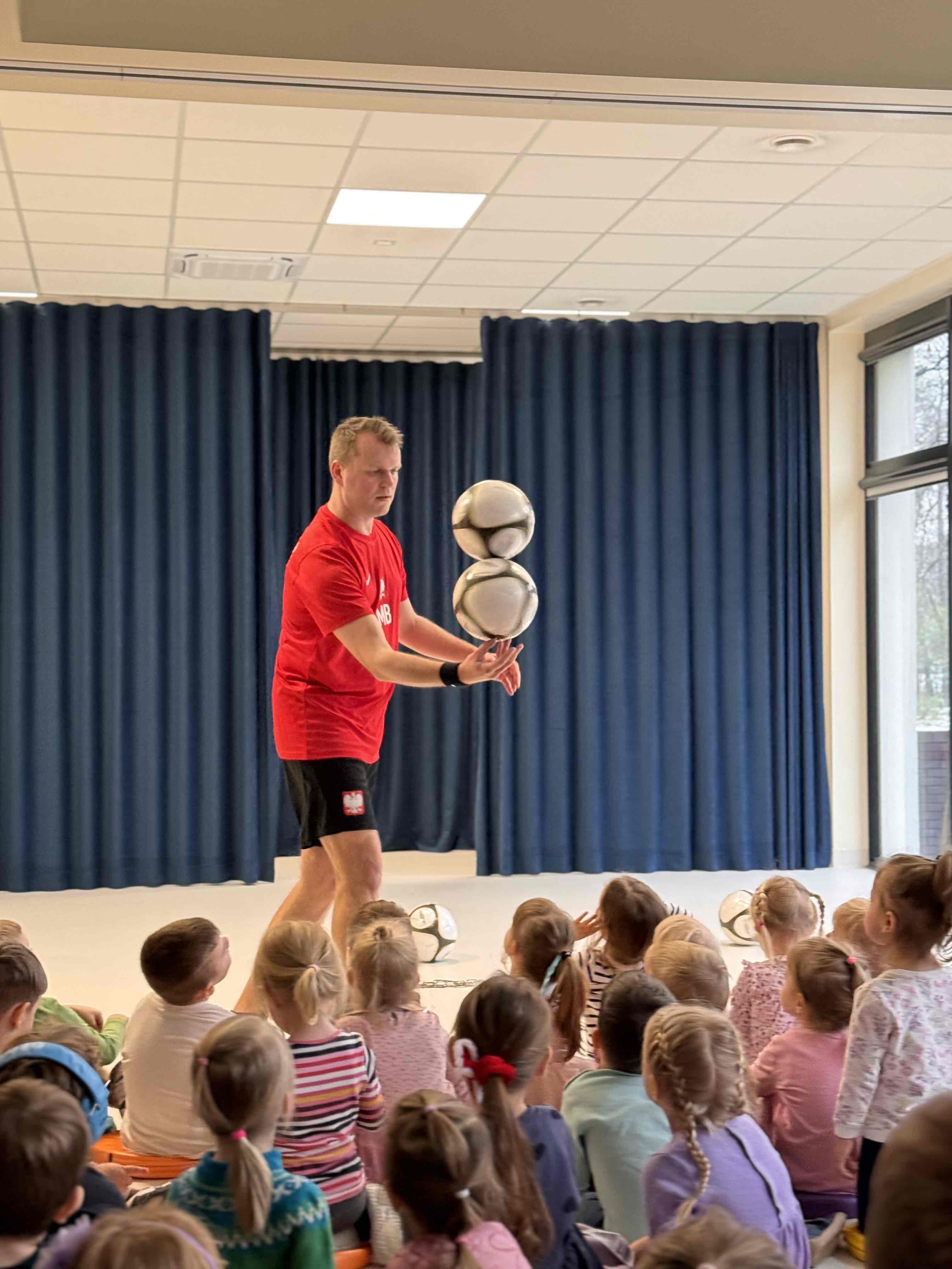 W minionym tygodniu gościli u nas uczestnicy programu "Mam talent", którzy zaprezentowali dzieciom niezwykłe umiejętności i zachęcili je do aktywności ruchowej. Podczas zajęć przedszkolaki mogły podziwiać efektowne triki z piłką oraz widowiskowe pokazy z hula-hop. Dzieci nie tylko oglądały występy, ale także miały okazję spróbować swoich sił, ucząc się prostych sztuczek i biorąc udział w krótkich warsztatach. Spotkanie dostarczyło wiele radości, śmiechu i pozytywnej energii, inspirując najmłodszych do rozwijania swoich talentów i pasji.