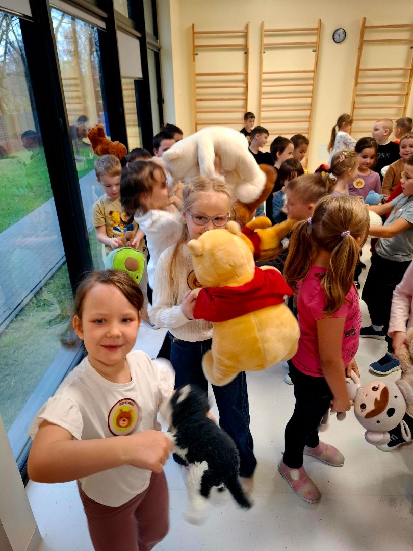 Jak co roku świętowaliśmy Dzień Pluszowego Misia, który przyniósł dzieciom mnóstwo uśmiechu i wspaniałej zabawy. Przedszkolaki przyszły tego dnia ze swoimi ukochanymi misiami. Uczestniczyły we wspólnych tańcach, zabawach ruchowych oraz misiowych konkurencjach. Nie zabrakło również głośnego czytania „misiowych” opowieści, tworzenia prac plastycznych i rozmów o ulubionych pluszakach.