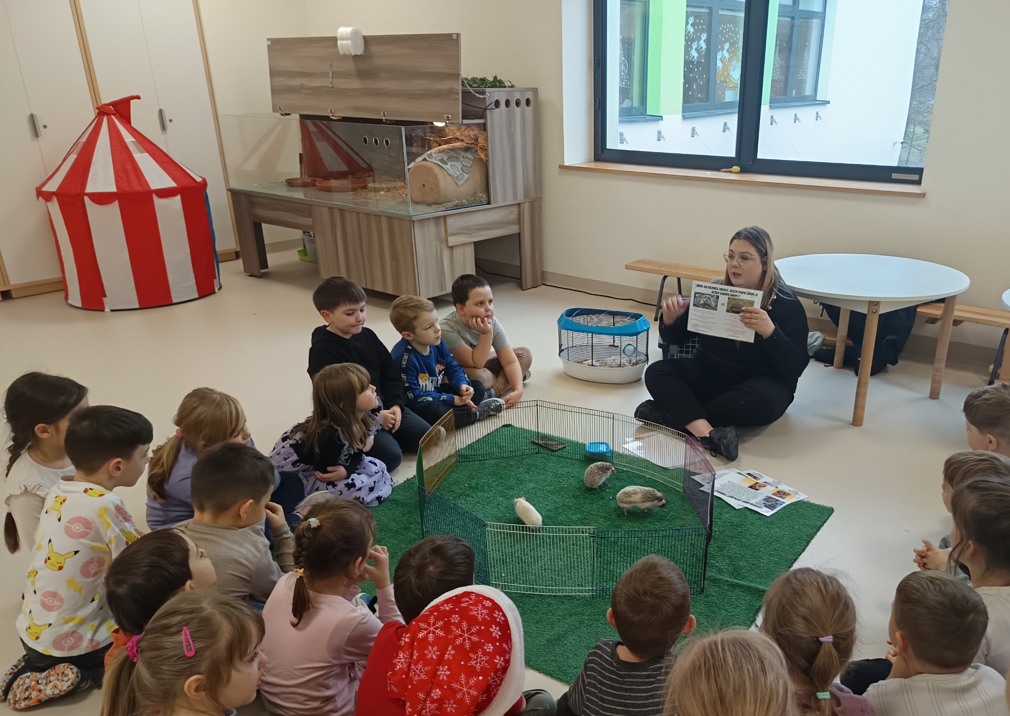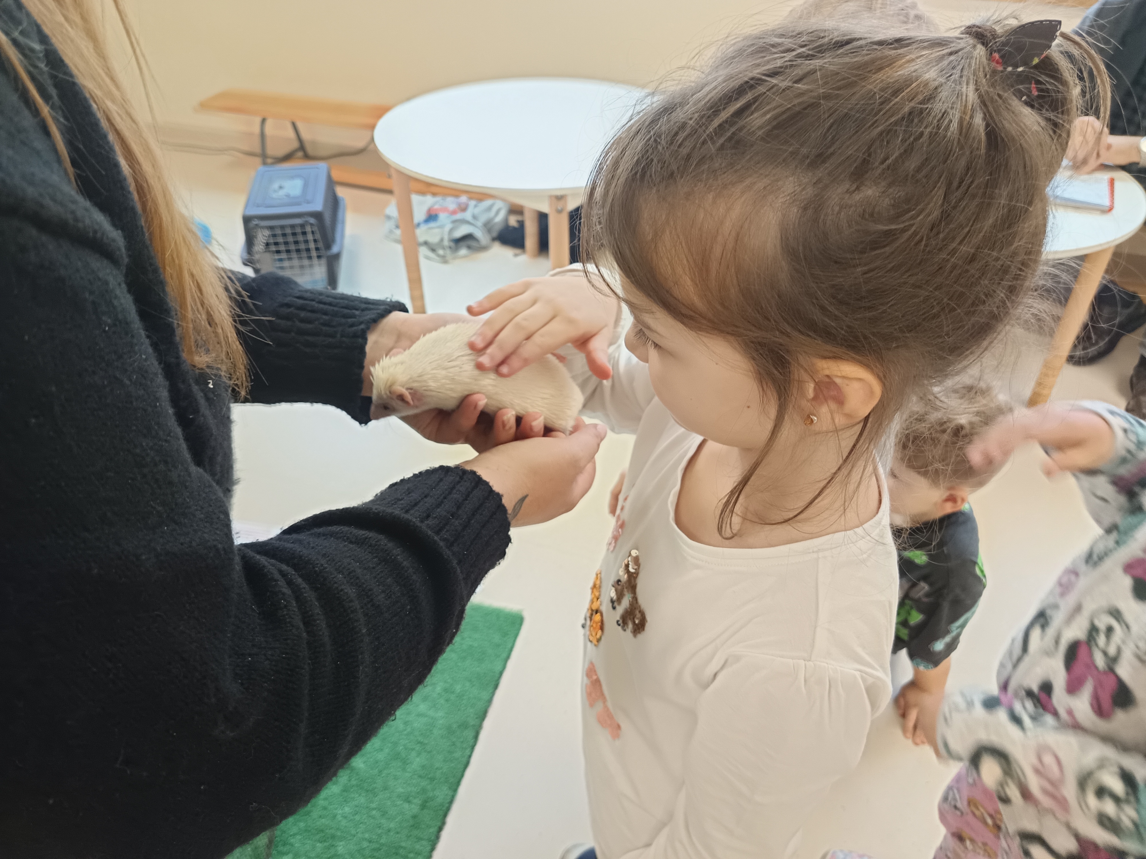 Spotkanie z jeżami pigmejskimi i lotopałanką było niezwykłą okazją do poznania z bliska fascynujących, małych mieszkańców świata zwierząt. Dzieci mogły zobaczyć, jak wyglądają jeże pigmejskie, dowiedzieć się, czym się żywią i jak o nie dbać. Dużo emocji wzbudziła także lotopałanka – malutki, skoczny ssak, który zachwycił przedszkolaków swoim urokiem i zwinnością.